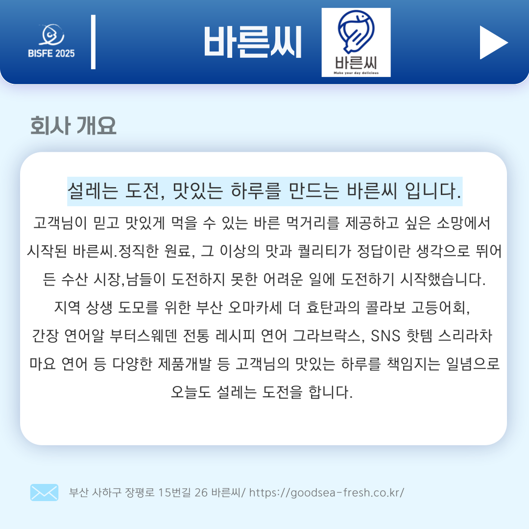 2025 부산국제수산EXPO 참가업체 바른씨 입니다.