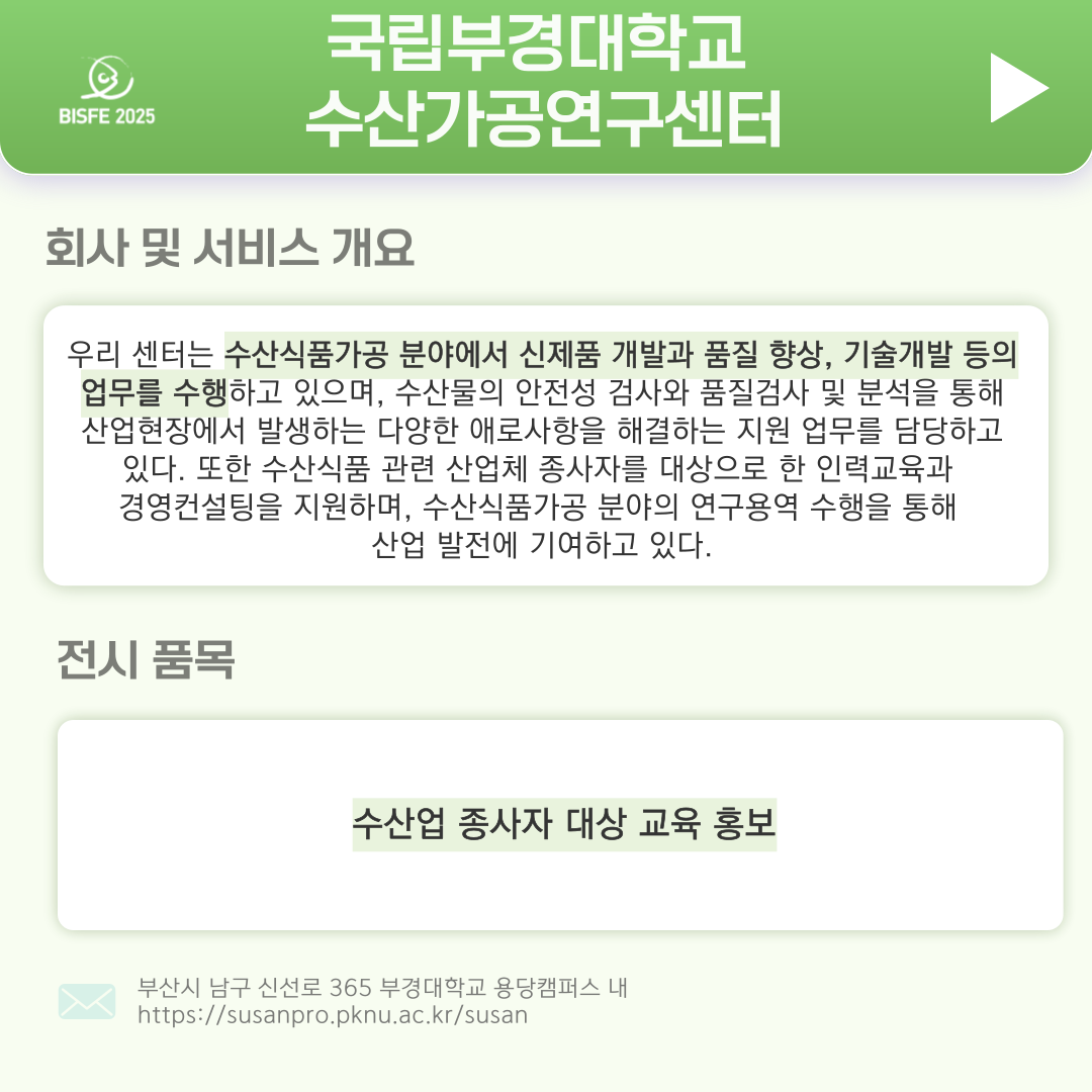 2025 참가업체 국립 부경대학교 수산가공연구센터