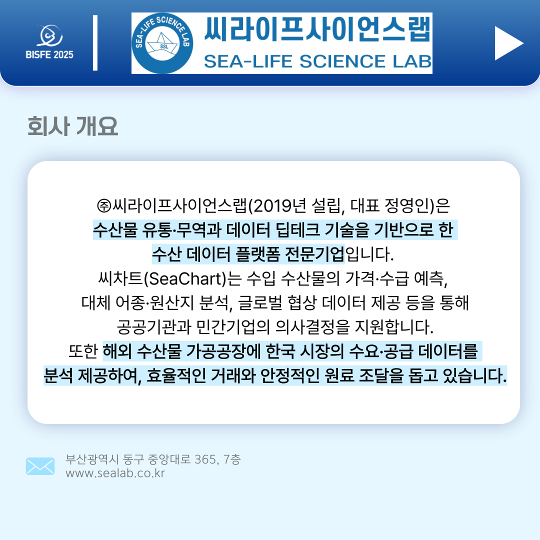 2025 부산국제수산EXPO 참가업체 씨라이프사이언스랩입니다.