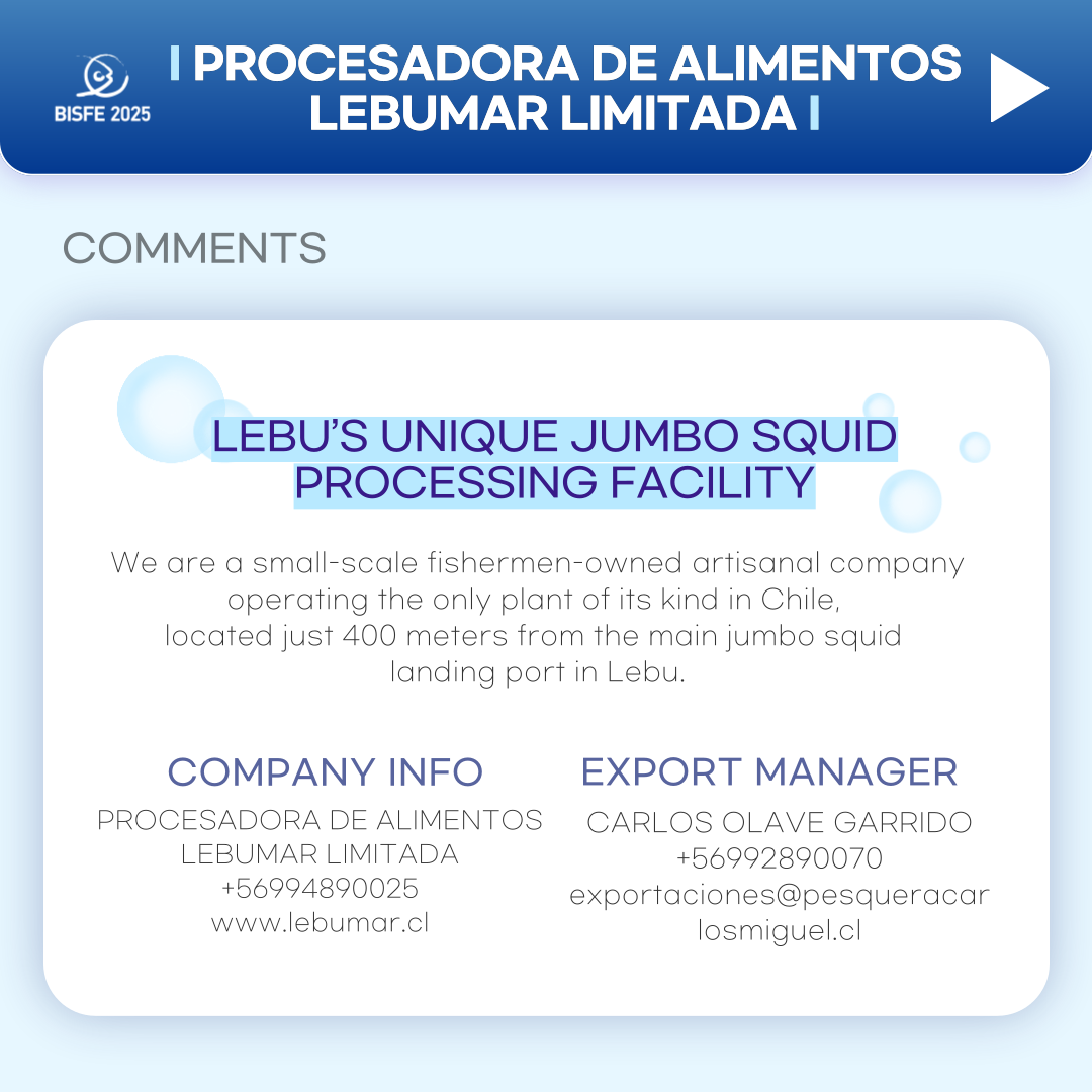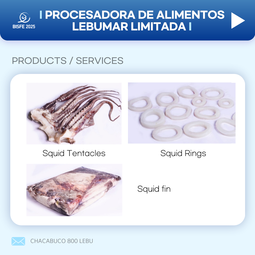 "PROCESADORA DE ALIMENTOS LEBUMAR LIMITADA" from CHILE!Meet their Frozen Squid Tentacels, Squid rings, Squid fin and more in #BISFE2025.