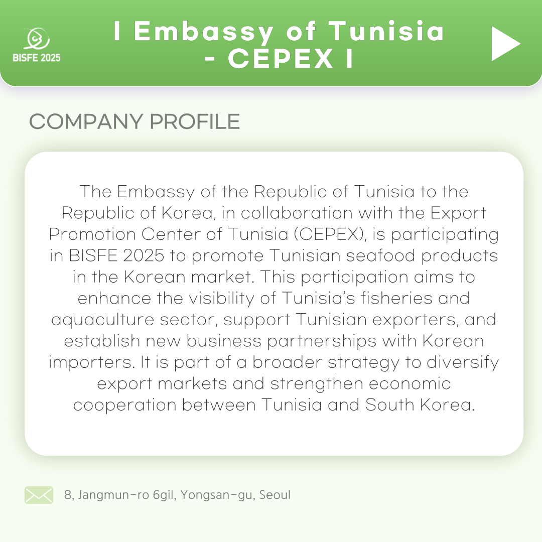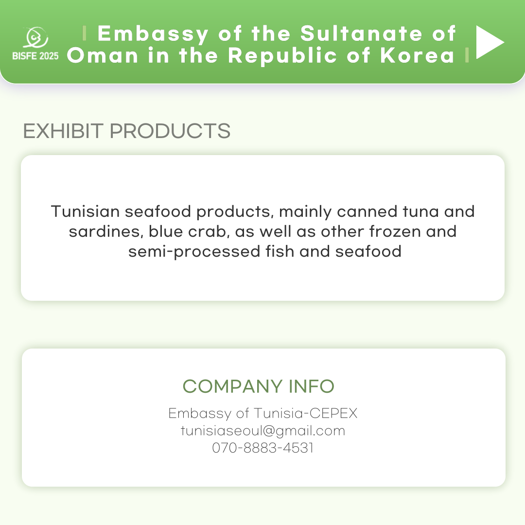 부산국제수산 EXPO에서 튀니지 해산물 전시를 만나보세요.