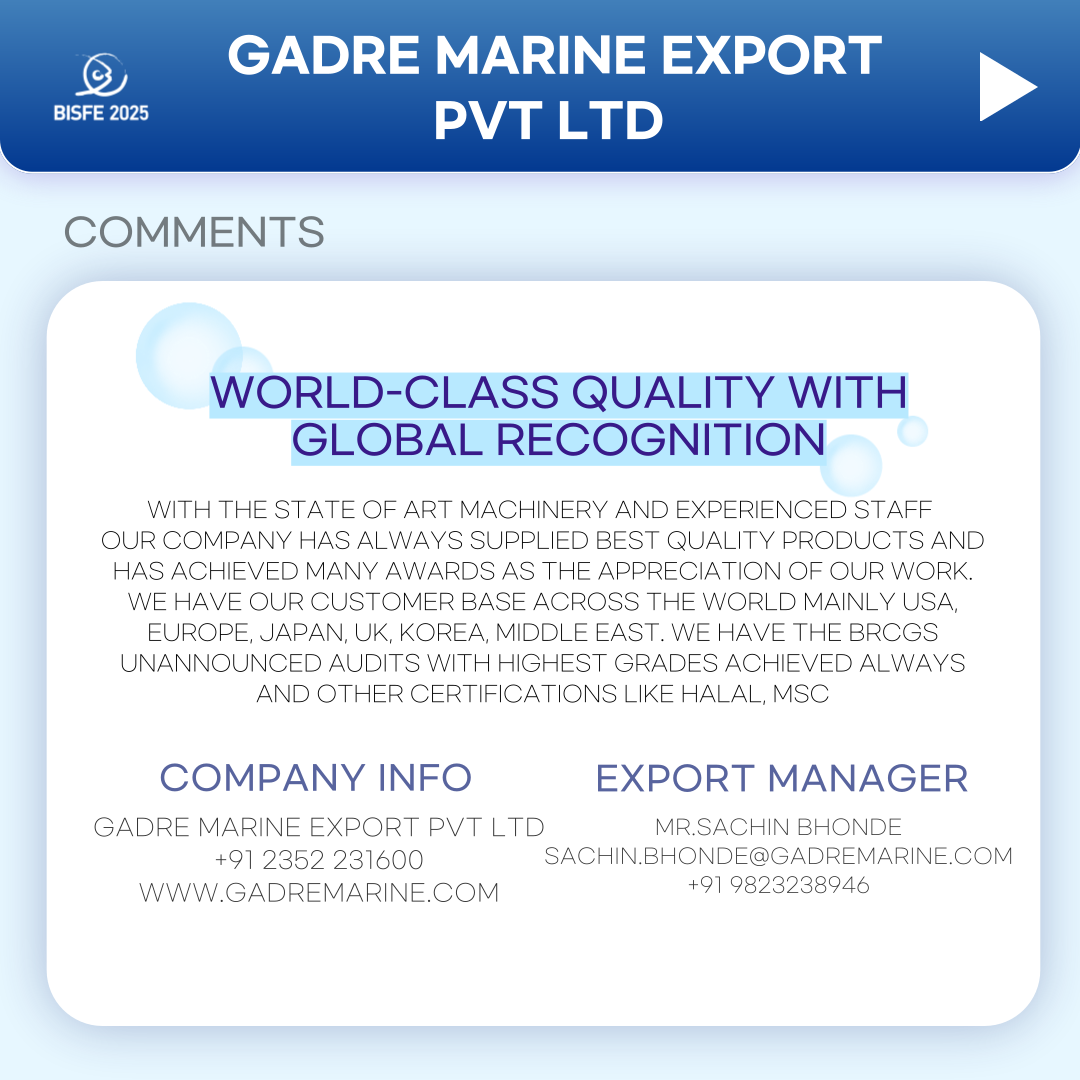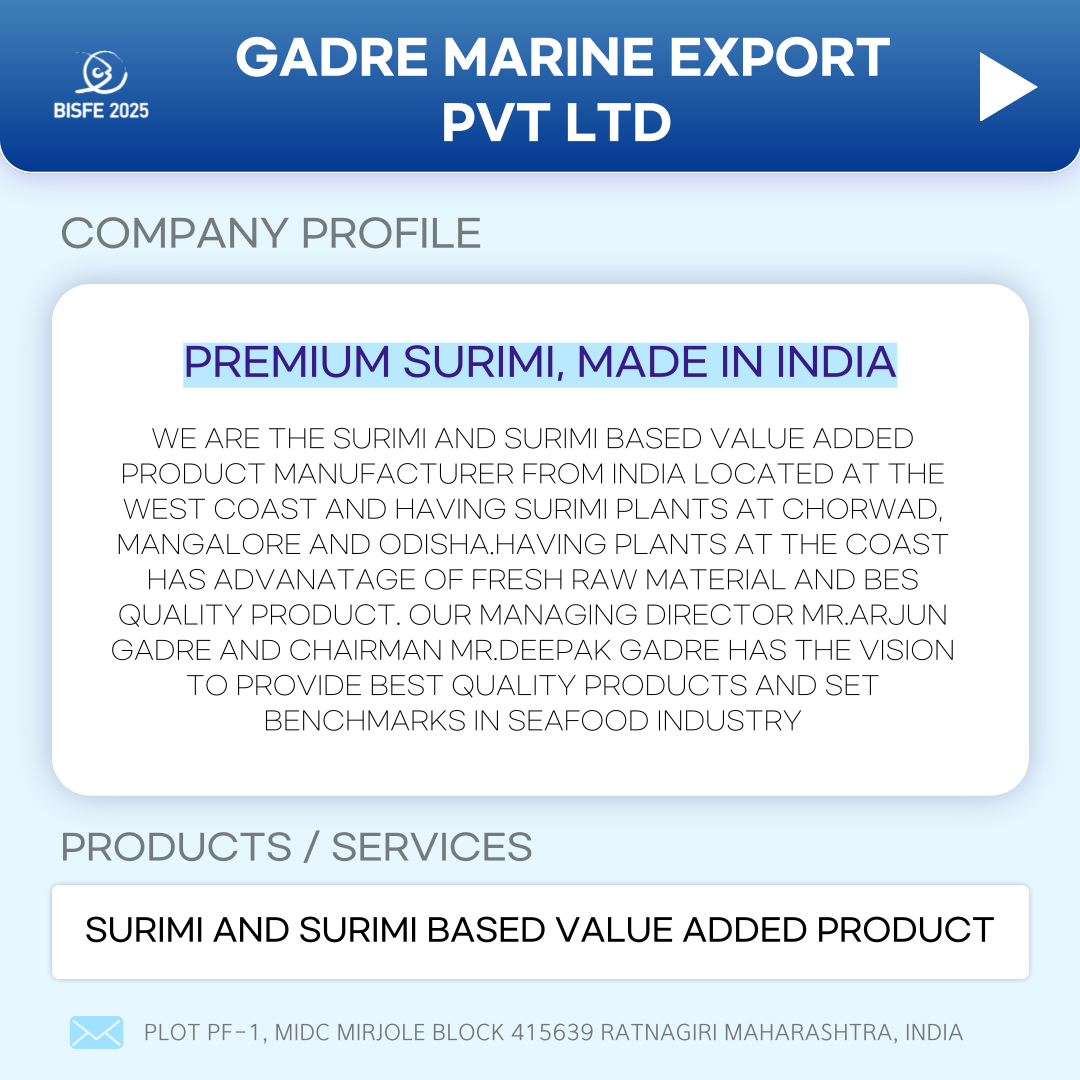 Introducing our exhibitor "GADRE MARINE EXPORT PVT LTD" from India!