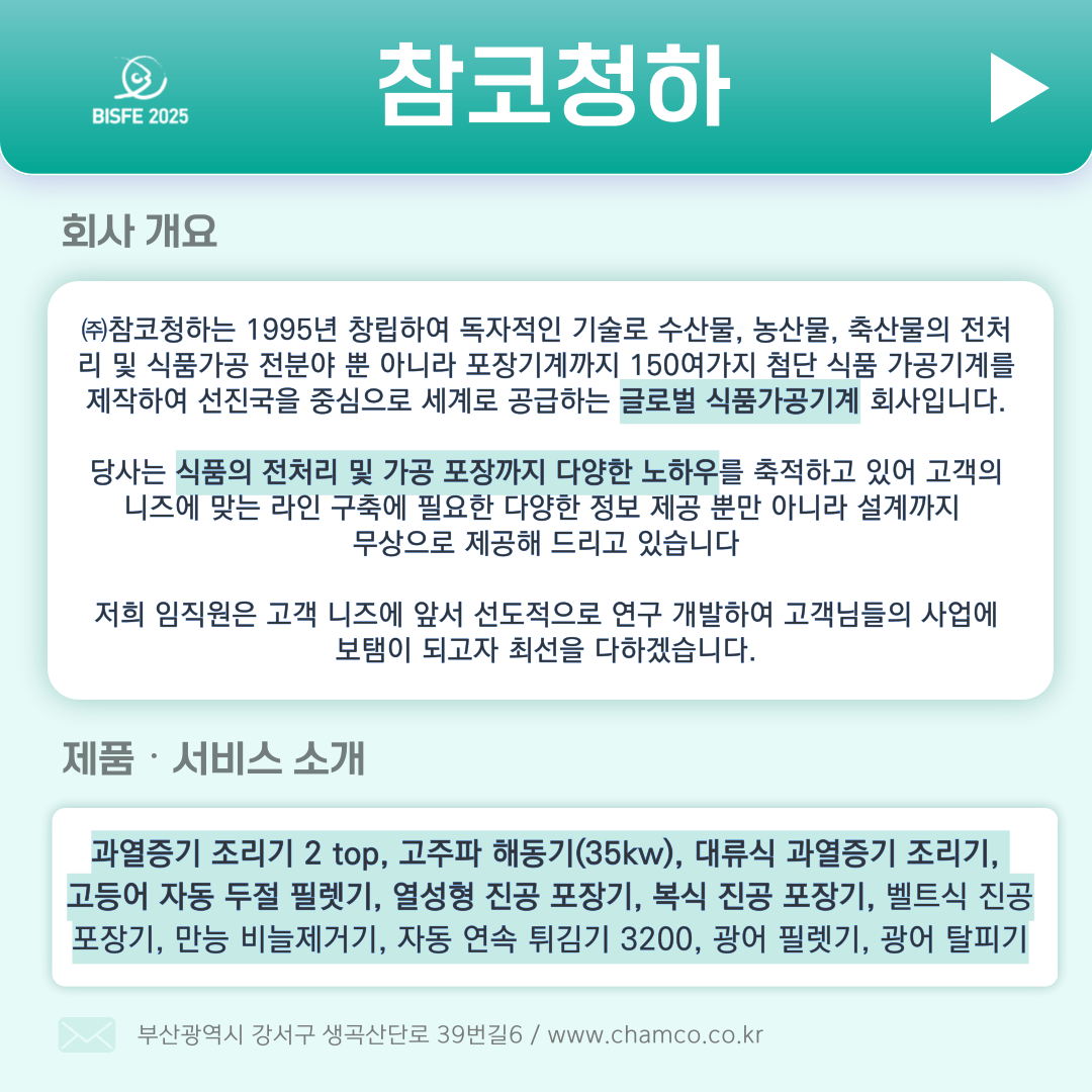 2025 부산국제수산EXPO 참가업체 참코청하 입니다.