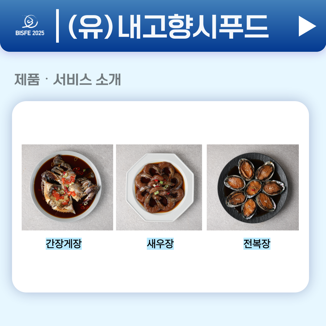2025 참가업체 내고향시푸드 페이지 정보 본문 2025 부산국제수산EXPO 참가업체 내고향시푸드입니다. 목록 이전글한국지식재산보호원 25.10.20 다음글(주)해담 25.10.16