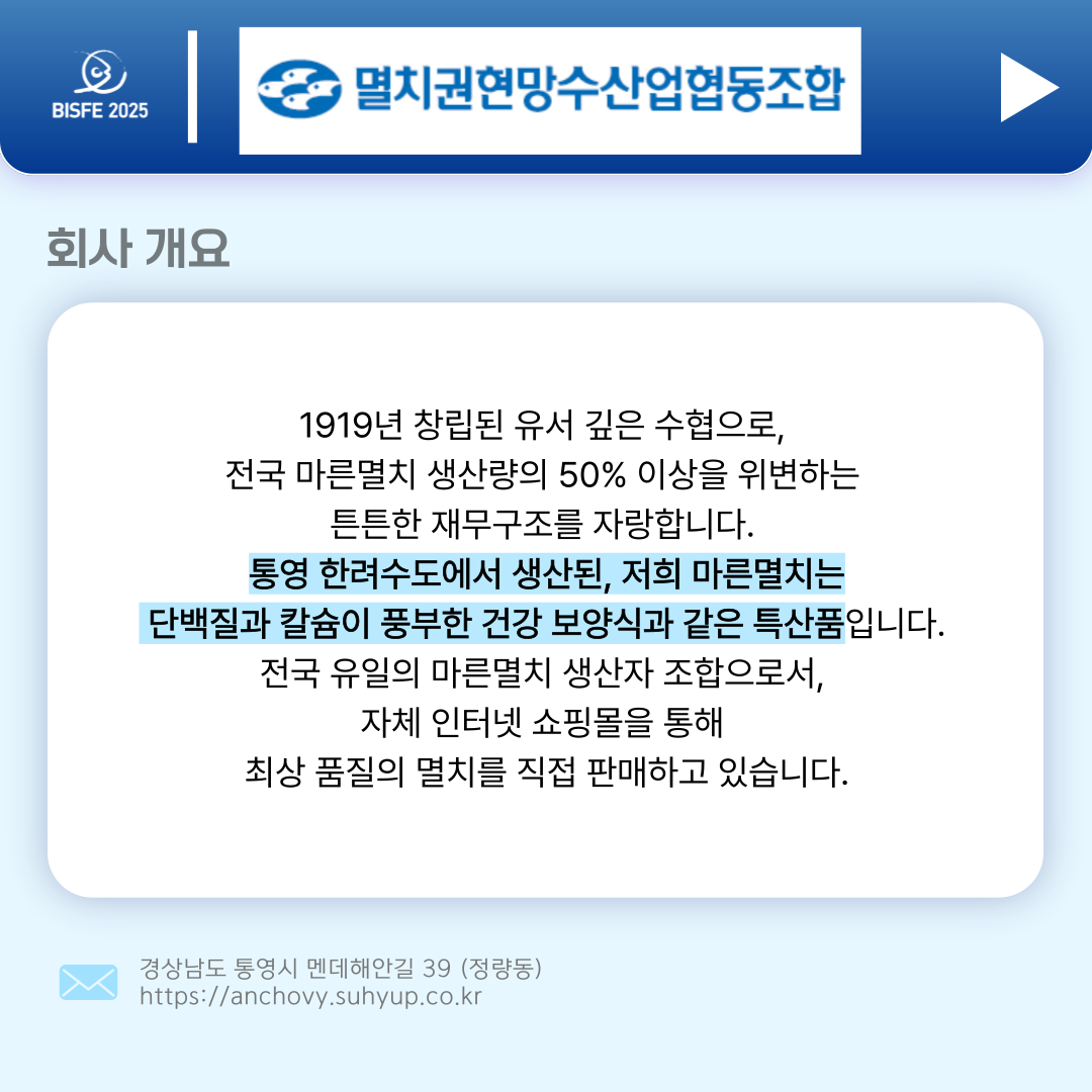 2025 부산국제수산EXPO 참가업체 멸치권현망수협입니다.