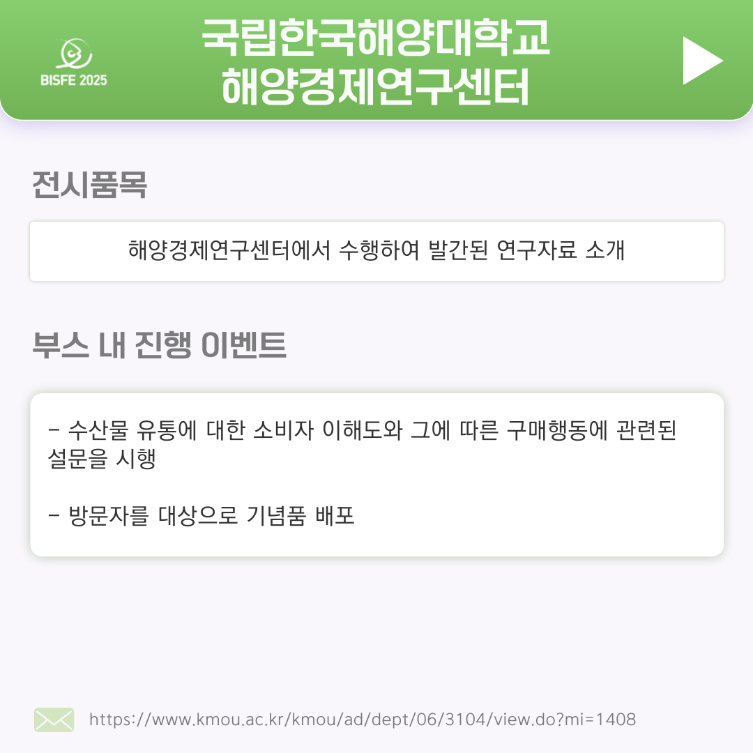 2025 참가업체 한국해양대 해양경제연구센터 페이지 정보 본문 2025 부산국제수산EXPO 참가업체 한국해양대 해양경제연구센터 입니다. 목록 이전글부산테크노파크 25.11.05 다음글(주)성우에프앤비 25.11.05