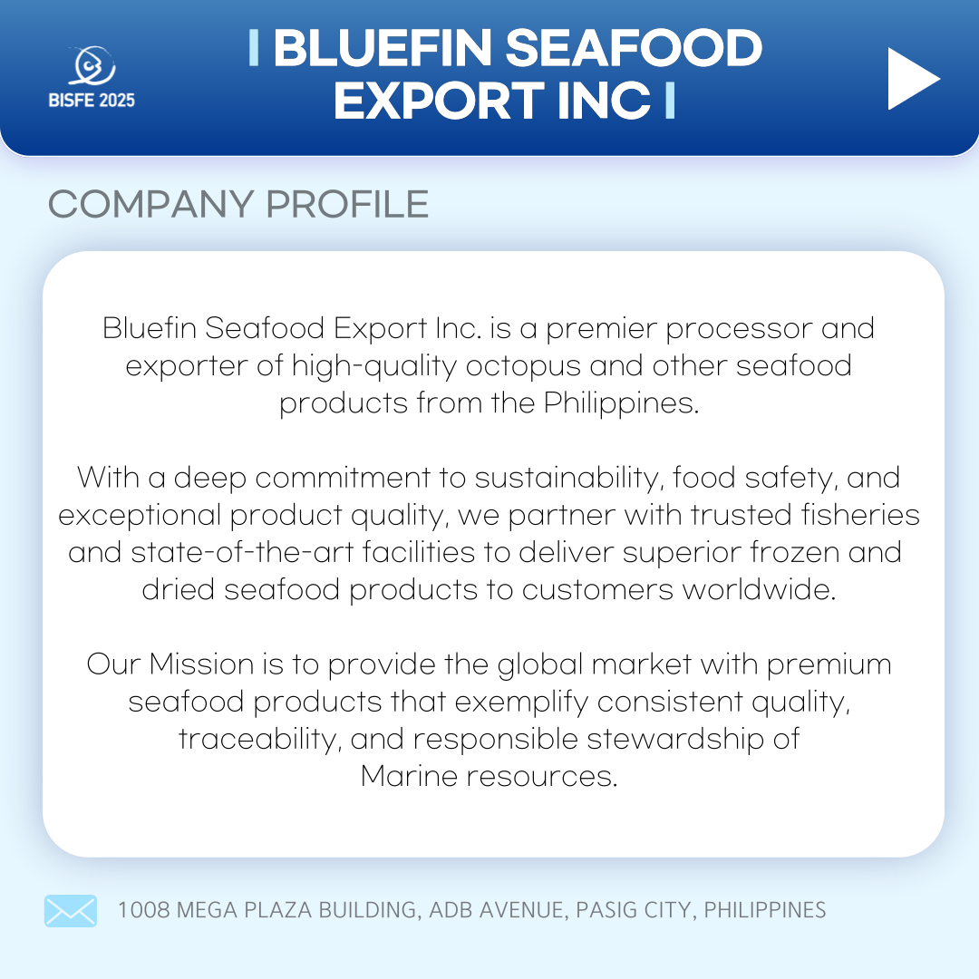 Introducing our exhibitor "BLUEFIN SEAFOOD EXPORT INC" from PHILIPPINES!