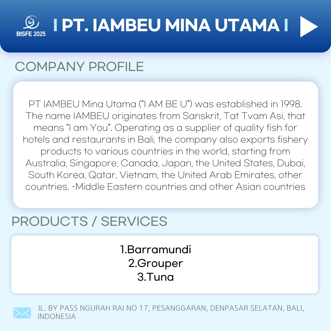 ????Introducing our exhibitor "PT. IAMBEU MINA UTAMA" from Indonesia!