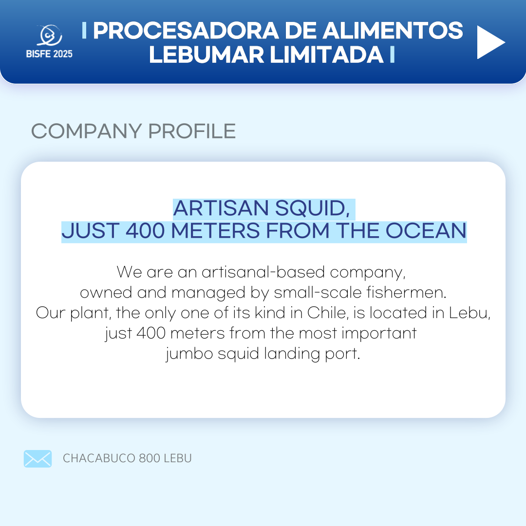 "PROCESADORA DE ALIMENTOS LEBUMAR LIMITADA" from CHILE!Meet their Frozen Squid Tentacels, Squid rings, Squid fin and more in #BISFE2025.