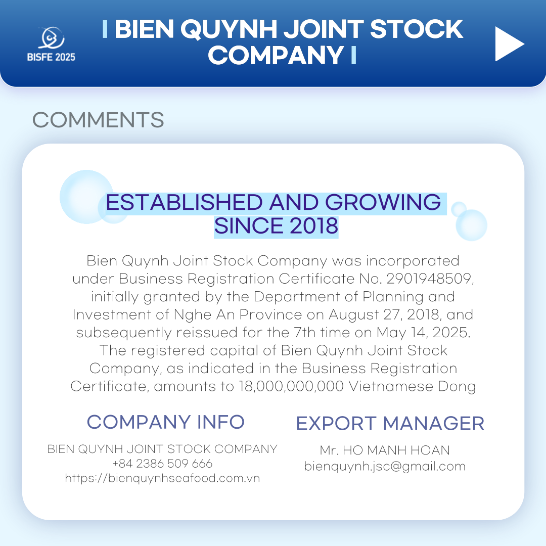 Introducing our exhibitor "BIEN QUYNH JOINT STOCK COMPANY" from Vietnam!