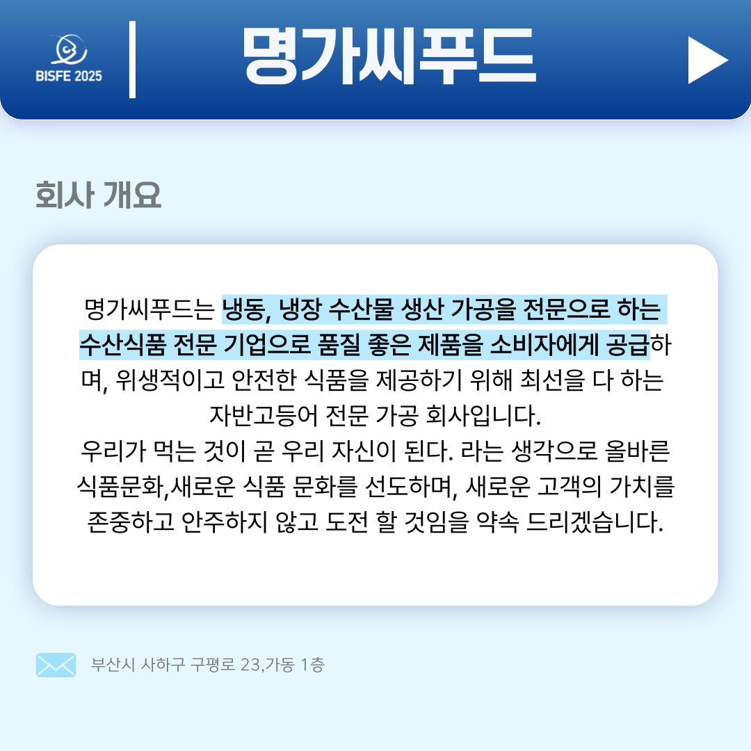 2025 부산국제수산EXPO 참가업체 명가씨푸드입니다.