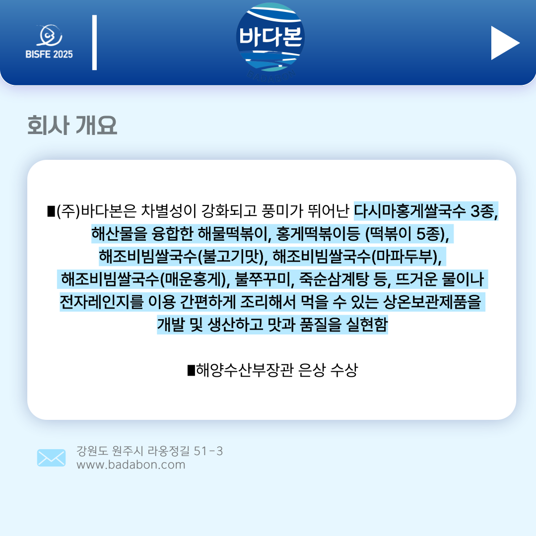 2025 부산국제수산EXPO 참가업체 바다본입니다.