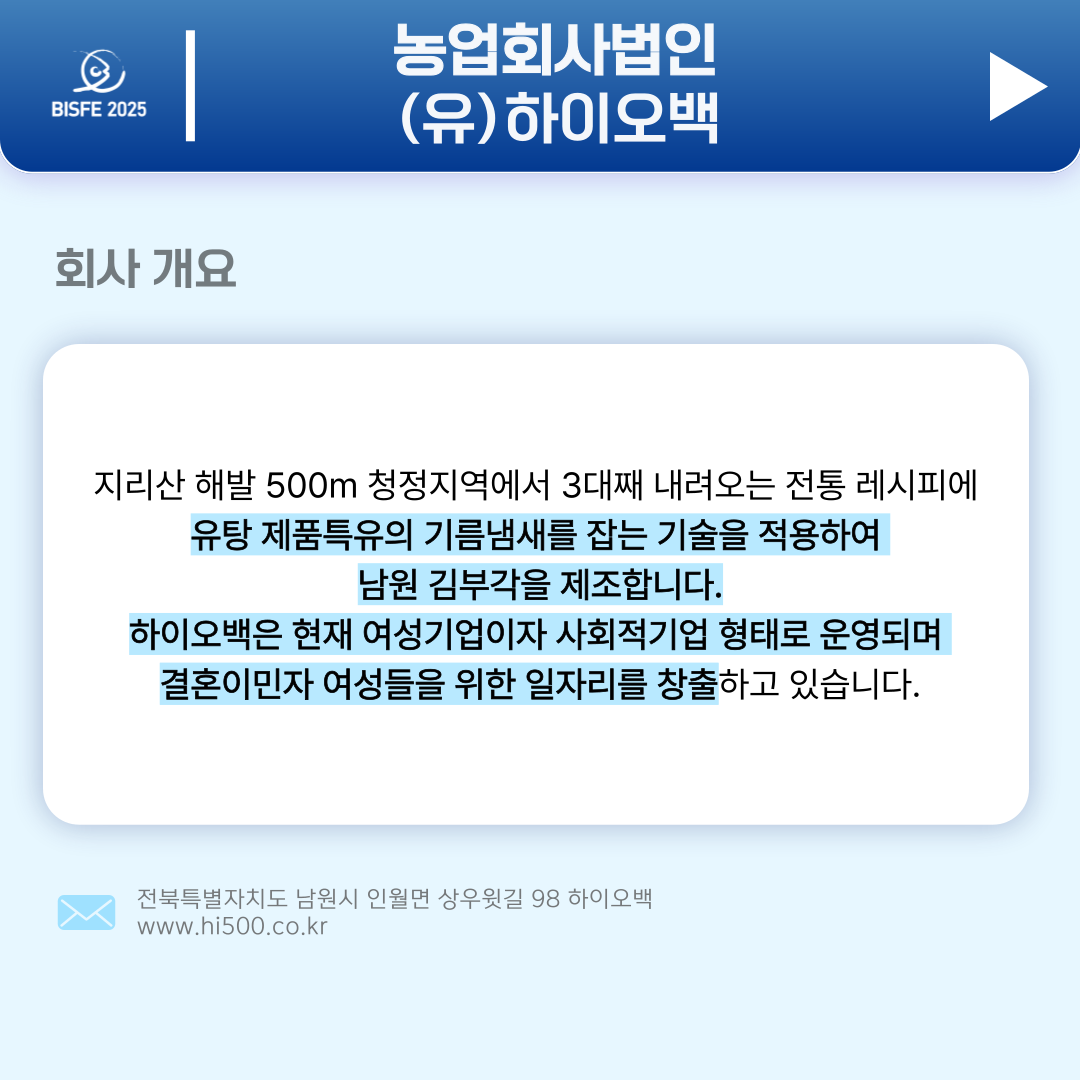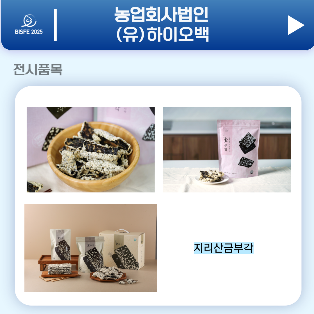 2025 부산국제수산EXPO 참가업체 하이오백입니다.