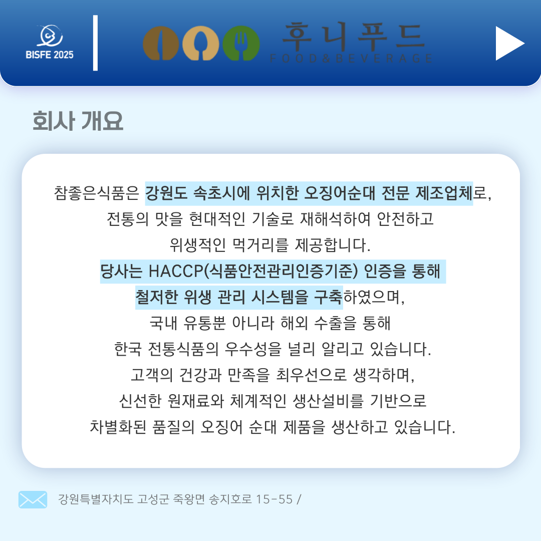 2025 부산국제수산EXPO 참가업체 후니푸드 입니다.