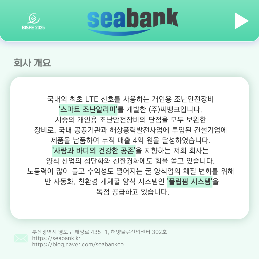 2025 부산국제수산EXPO 참가업체 (주)씨 뱅크입니다.