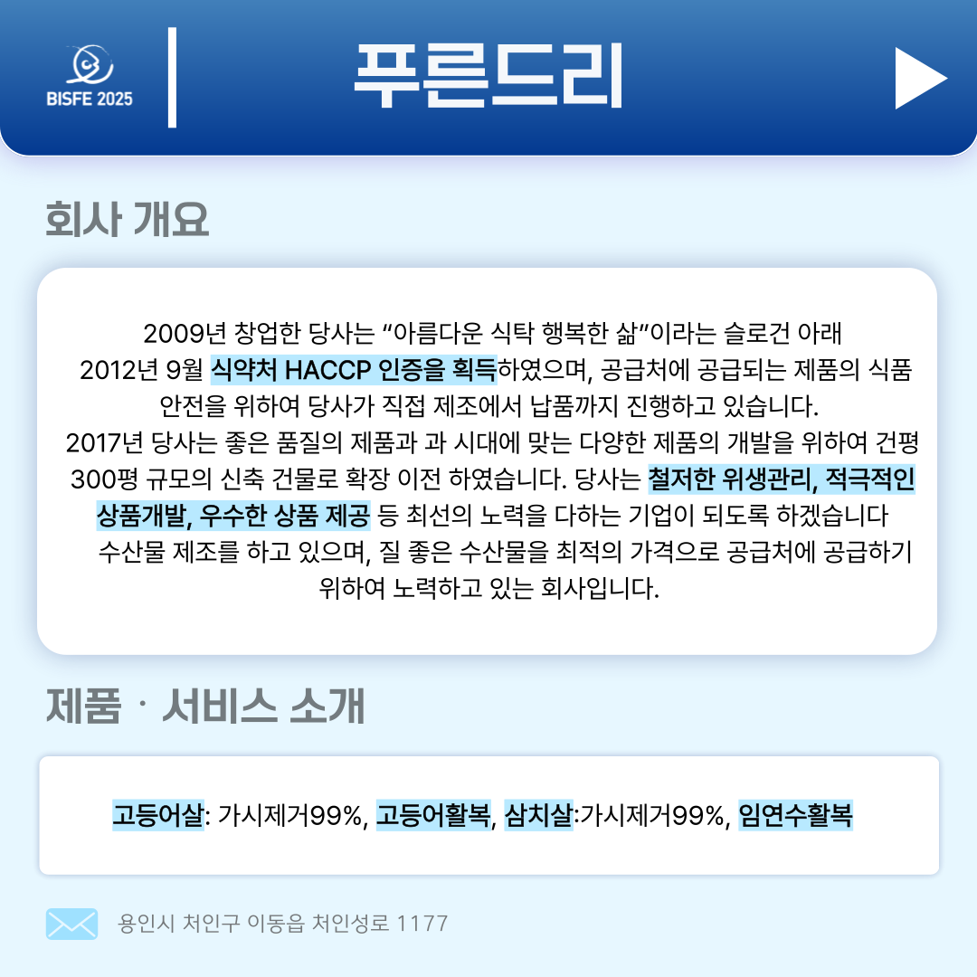 2025 부산국제수산EXPO 참가업체 푸른드리 입니다.