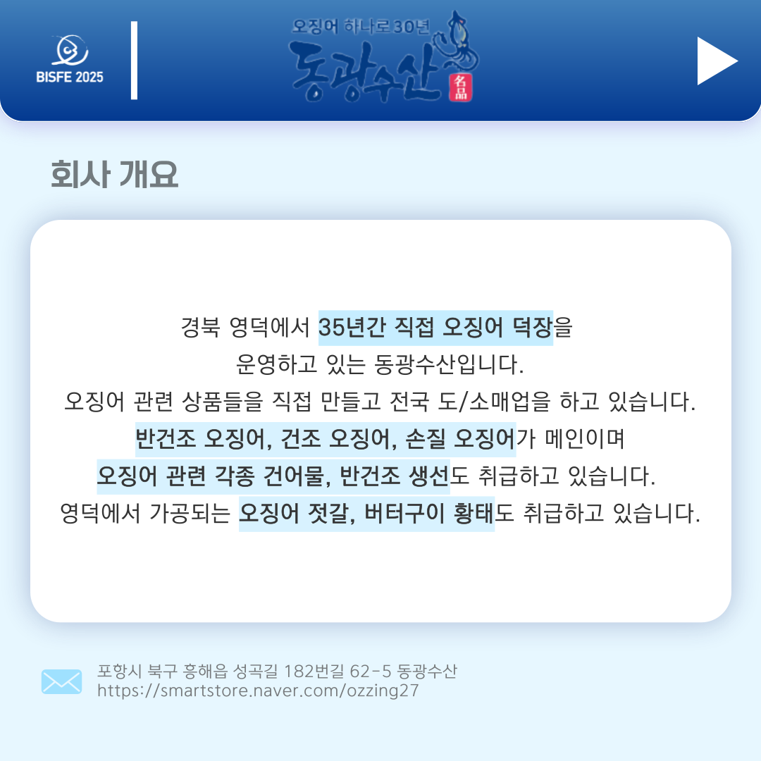 2025 부산국제수산EXPO 참가업체 동광수산입니다.