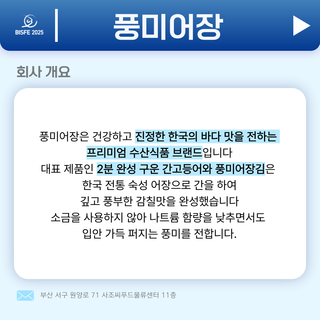 2025 부산국제수산EXPO 참가업체 풍미어장입니다.