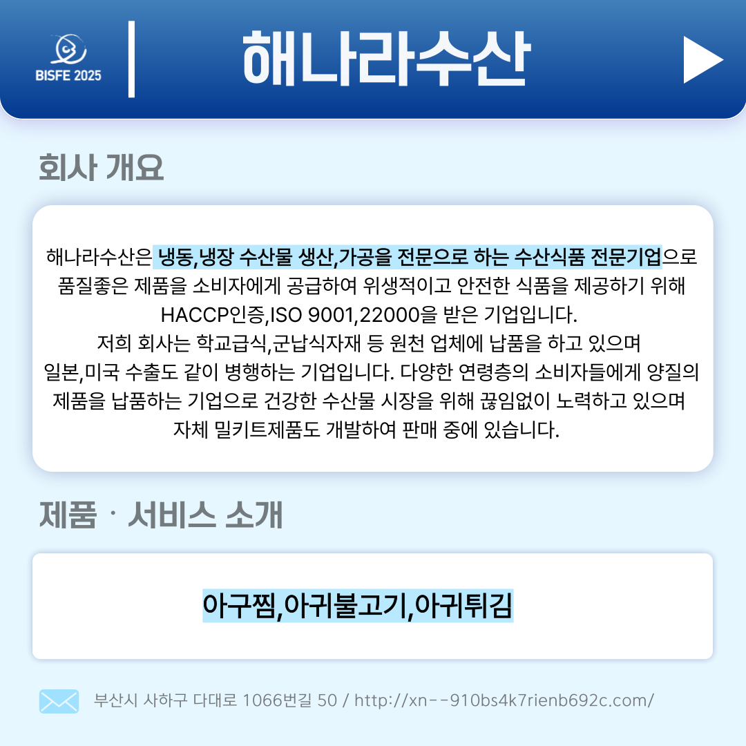2025 부산국제수산EXPO 참가업체 해나라수산입니다.