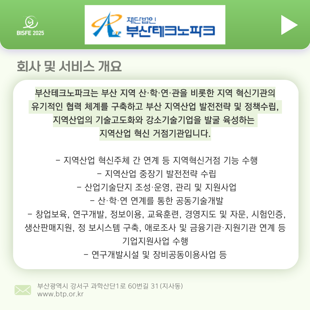 2025 참가업체 부산테크노파크 페이지 정보 본문 2025 부산국제수산EXPO 참가업체 부산테크노파크 입니다. 목록 이전글충남테크노파크 25.11.05 다음글한국해양대 해양경제연구센터 25.11.05